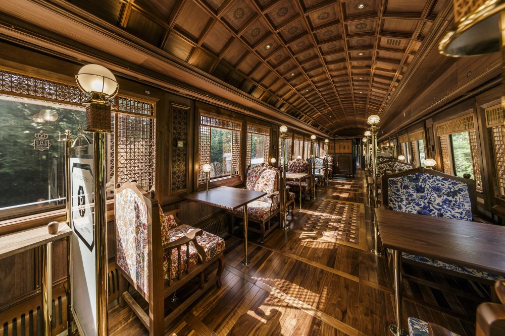 横浜駅よりTHE ROYAL EXPRESSにご乗車いただきます。組子などの伝統工芸やステンドグラスが各所に散りばめられた贅沢な車内で、美しさ、煌めく旅をお楽しみください。