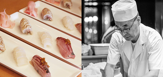 伊東港で水揚げされる地魚にこだわり、鮮度が良く脂がのった旬の地魚を選りすぐり、最高の素材を江戸前の握りでご提供します。