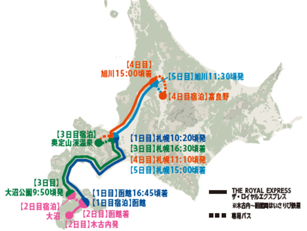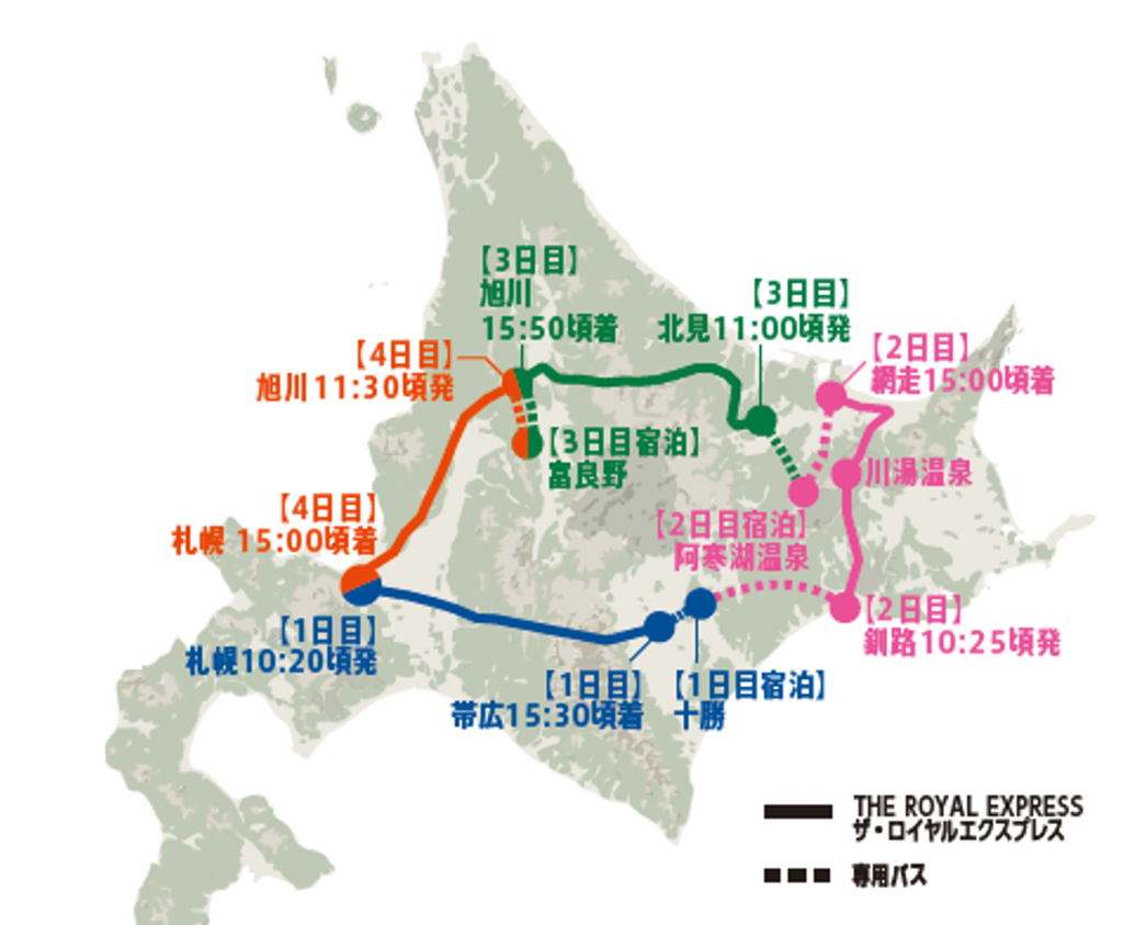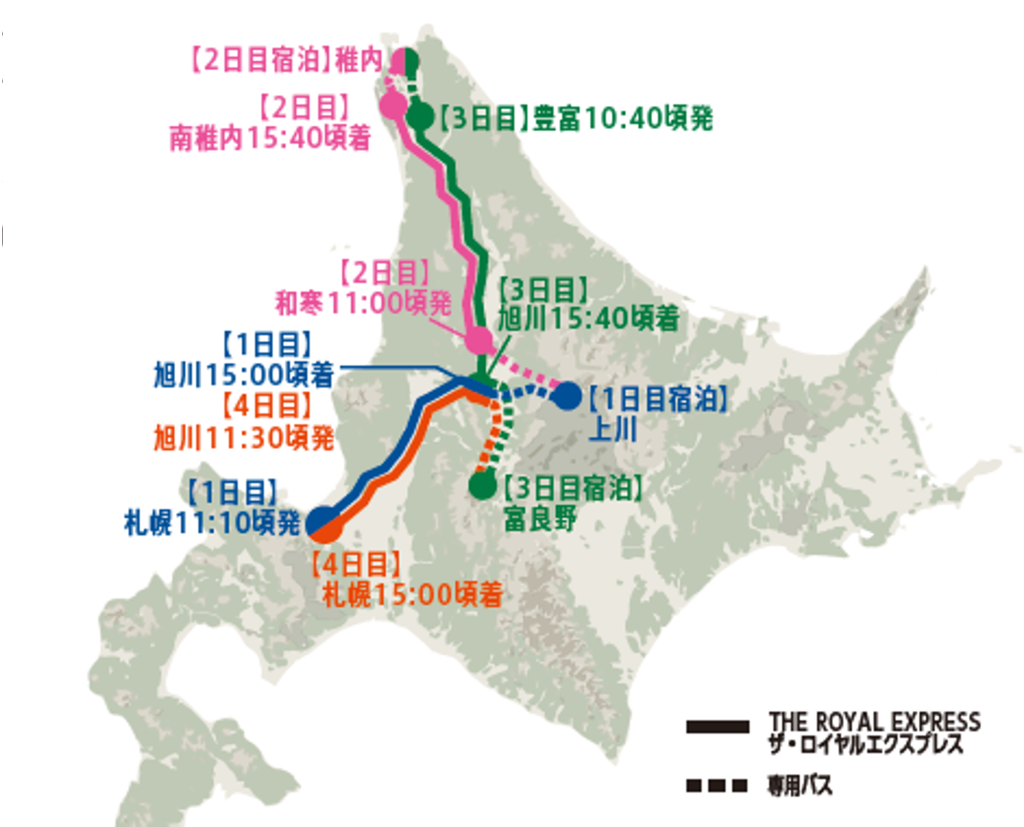 ・添乗員は同行いたしません。(THE ROYAL EXPRESSの車内クルーがご案内いたします)