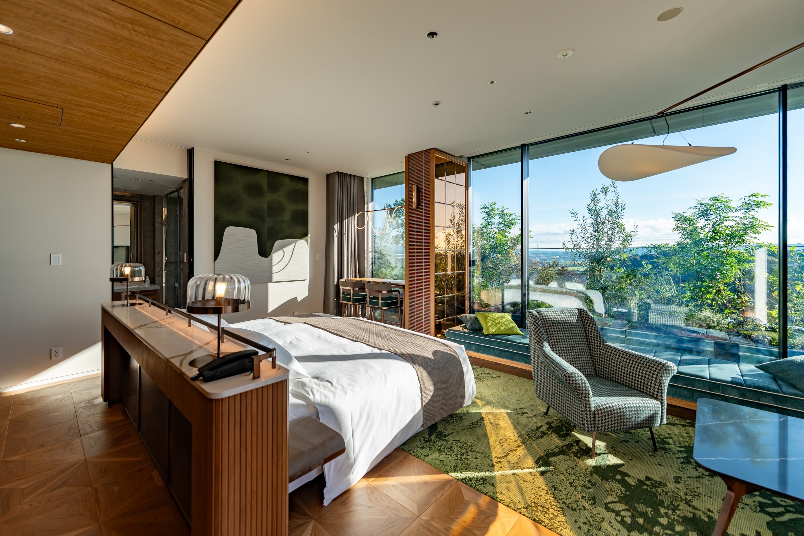 茶畑、森の木々、季節を映し出す草花。緑に囲まれた丘の上に建つ遠州のリトリート。こころ落ち着かせる自然に身をゆだね、開放的な雰囲気を心ゆくまで。